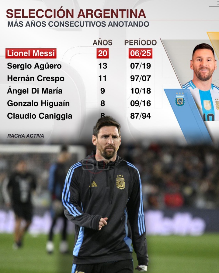 阿根廷的王!梅西通顺20年为阿根廷国度队破门,队史第一