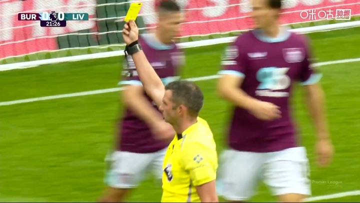 09月14日讯 英超第4轮,利物浦客战伯恩利,比赛第22分钟,科尔克兹在禁区内倒地,裁判核定吹罚假摔并出示黄牌。