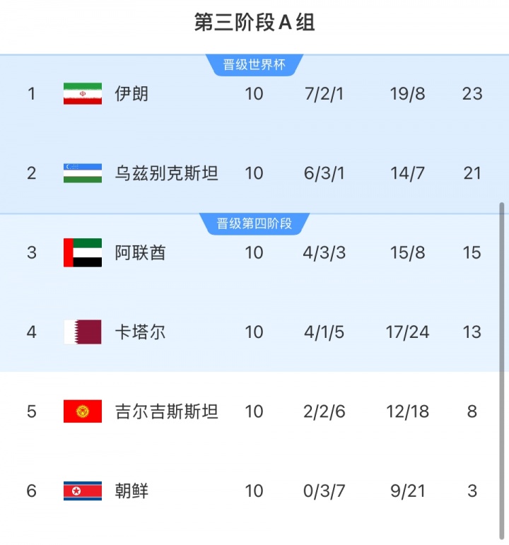 天下杯预选赛第三阶段,乌兹别克斯坦排行A组第二名,晋级2026年天下杯。