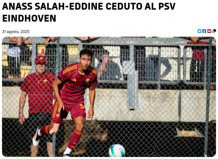 8月31日讯 罗马官宣,俱乐部与埃因霍温就埃丁的转会兑现左券。