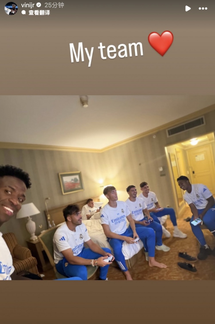 赛前,维尼修斯在酬酢媒体晒出球队扫数打游戏的像片,像片中迪亚斯、赫伊森等东说念主在内。并配文:我的团队♥️