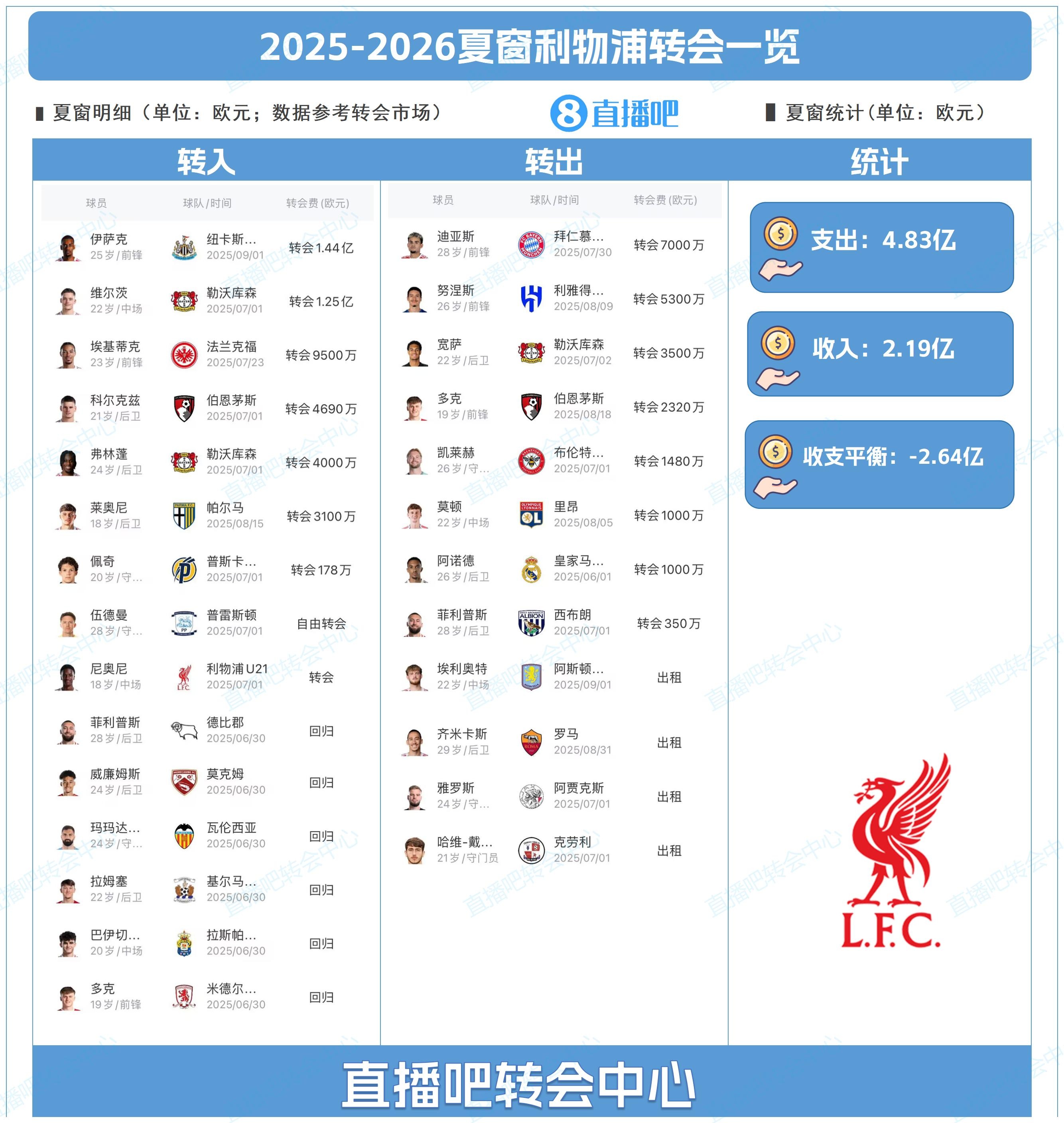 本年夏窗,迪亚斯以7000万欧转会费从利物浦加盟拜仁,出战各项赛事19场孝敬12球5助,在德甲11场7球4助。