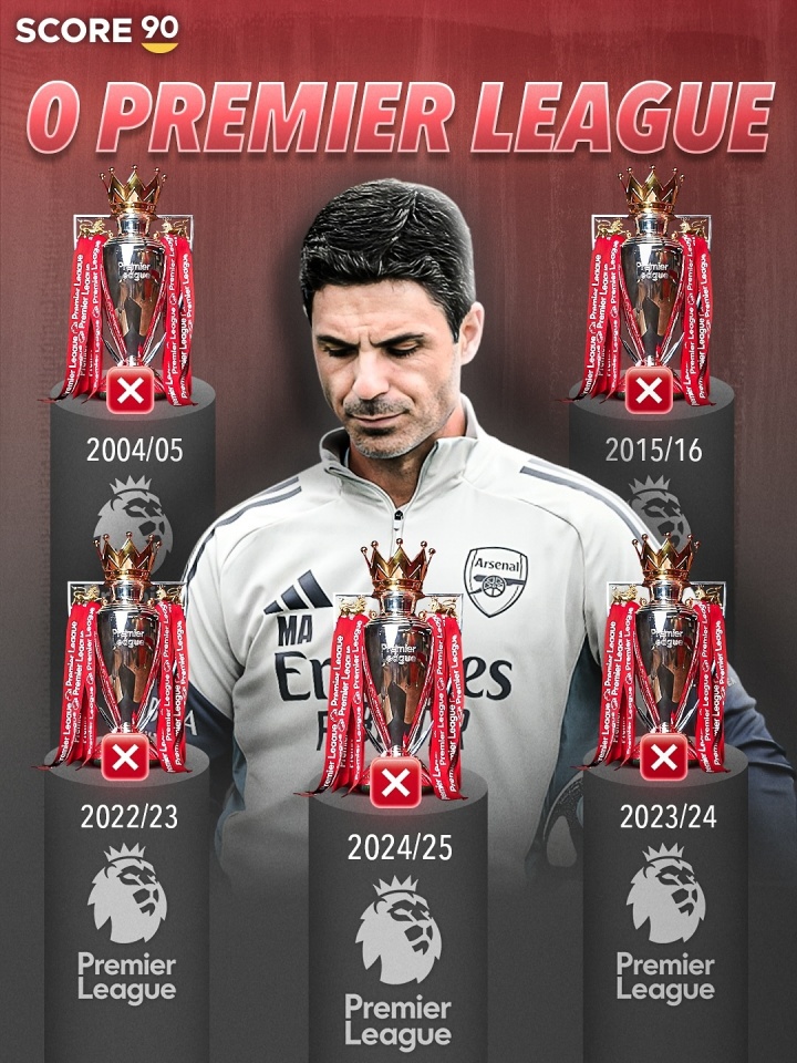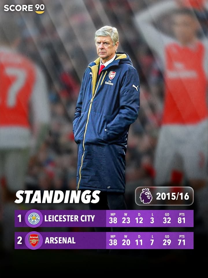 阿森纳还是21年未夺得英超冠军,自从前次夺冠(03/04赛季)之后,阿森纳还是5次取得英超亚军,技术经验了15/16赛季的蓝狐遗迹和近几年的三连亚。