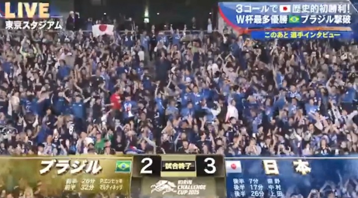 全场欢畅!日本让二追三逆转巴西,终场哨后现场不雅众爆发烧烈欣慰