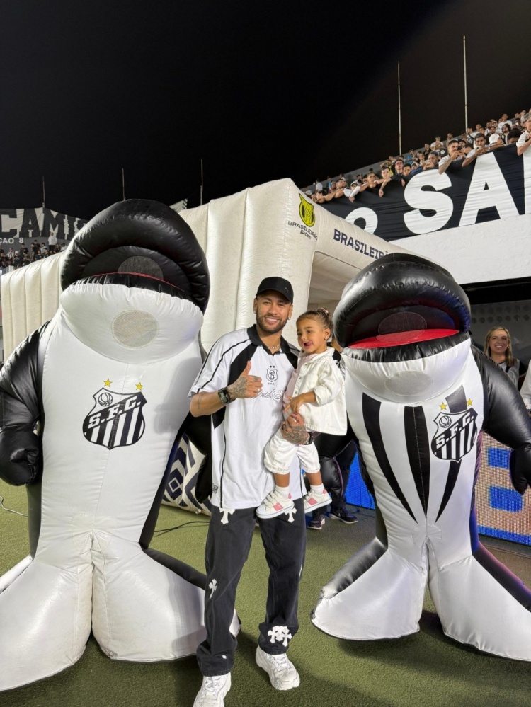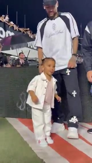 桑托斯俱乐部社媒晒出视频和相片,因伤缺席的内马尔带着犬子玛维来到现场,为桑托斯趋奉。