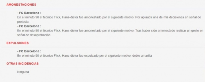 10月19日讯 西甲第9轮,巴萨2-1绝杀赫罗纳。比赛补时阶段,弗里克不悦裁判,两黄变一红被罚下。赛后的裁判发达中给出了弗里克吃牌的原因。