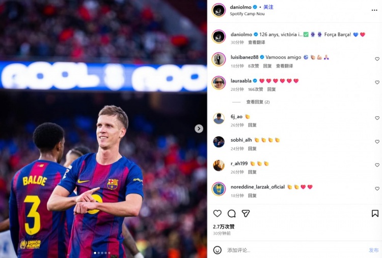双响立功!奥尔莫社媒晒指腕表庆祝:126周年拿下告成!巴萨前进