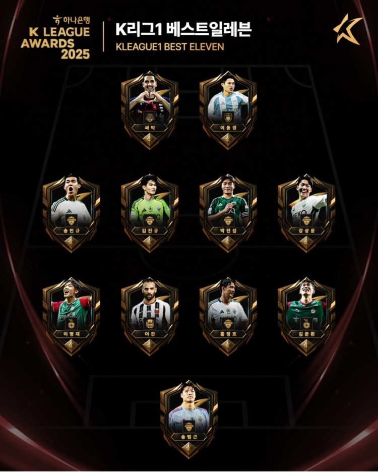 本日K联赛官方公布了本赛季最好球员、最好素质、最好后生球员奖项赢得者以及最好十一东谈主阵。具体如下: