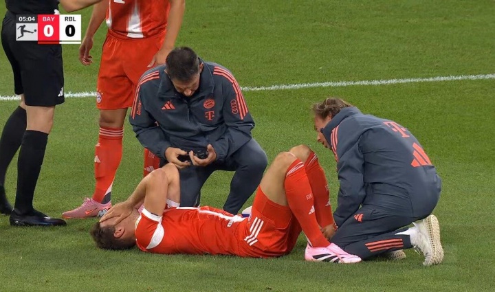08月23日讯 德甲首轮拜仁vs莱比锡,开场第5分钟,格雷茨卡从死后被撞倒疑似脚踝受伤,帕夫洛维奇热身准备上场,队医治愈后球员仍持续坚合手。