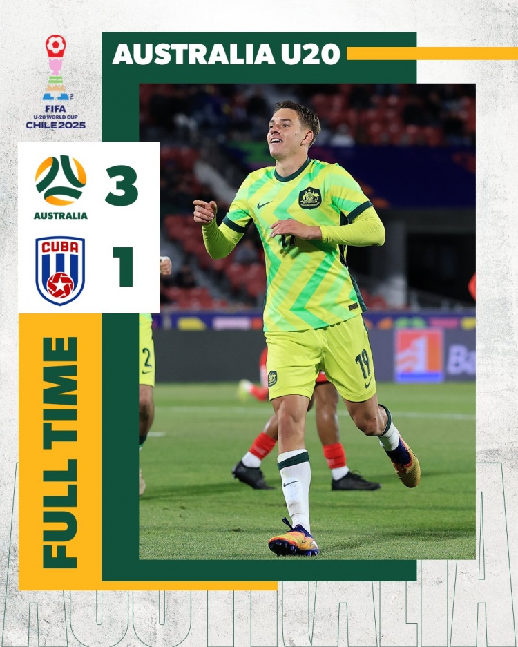 10月5日讯 世青赛小组赛终末一轮比赛,澳大利亚3-1打败古巴。