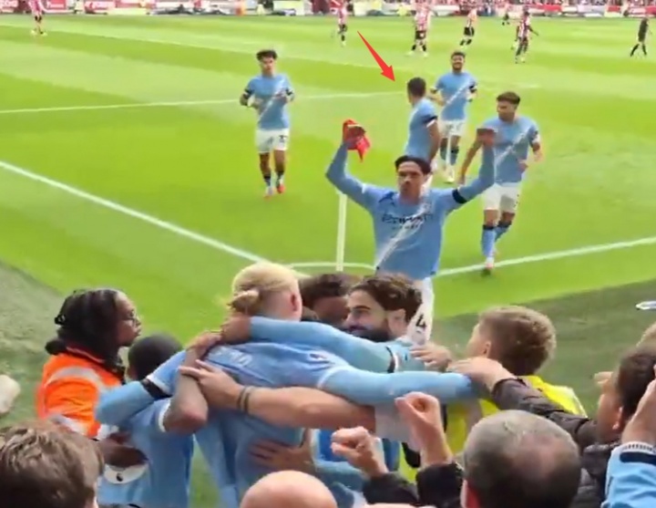 👀细!罗德里庆祝时呼唤两名队友留在对方半场,防护敌手开球