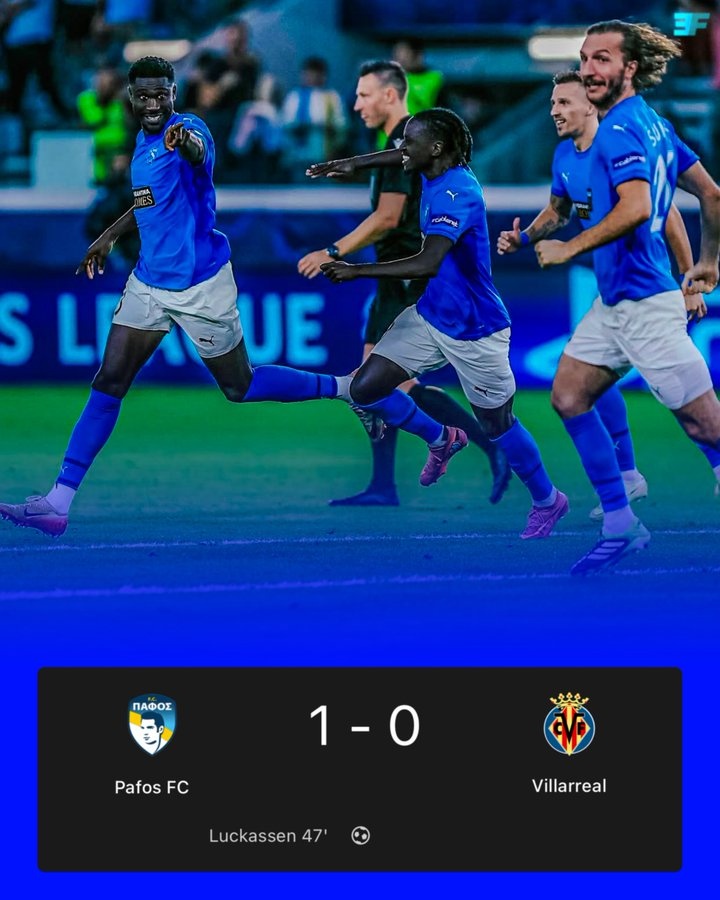 11月6日讯 塞浦路斯球队帕福斯在欧冠1-0打败比利亚雷亚尔,得益一场得手。