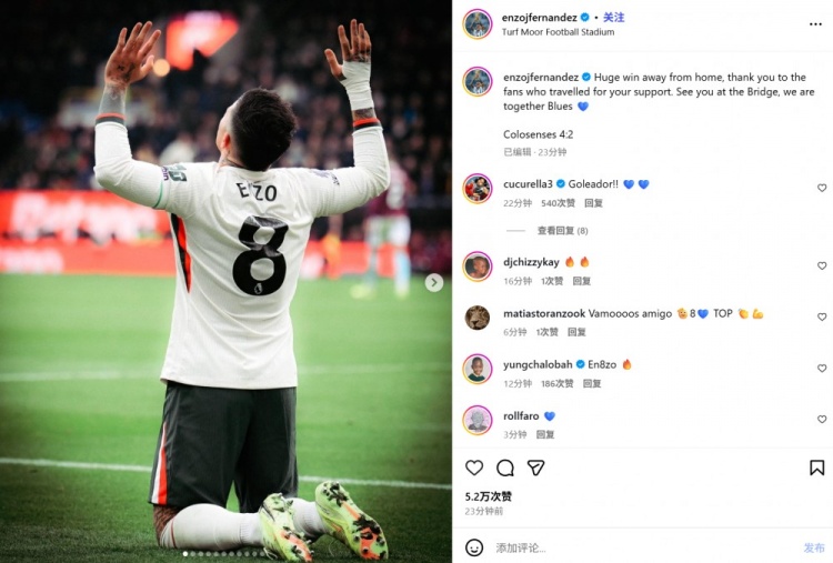 推射锁定胜局!恩佐社媒晒庆祝照:客场取胜,感谢远征球迷相沿